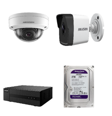 Camera QTY – 8 | DS-2CD1123 G0E-I(L) – 2MP 1/2.8″, IR range: up to 30m | DS-2CD1023G0E-I(L), DC12V | 4 CH 40Mbps | WD20PURX-78 – 2TB/64MB(6Gb/s) | Support smart motion detection | Remote viewing | Playback from mobile | 24hrs recording | Additional installation charge DS-2CD1123G0E-IDS-7600NI-Q1/P SERIES NVR